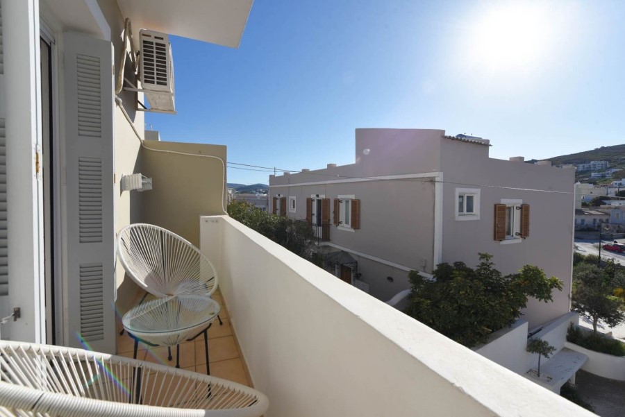 This modern and convenient apartment offer the perfect choice for your relaxing vacations. The entire apartment is 57 square meters with a terrace and balcony. Our Apartment No1 offer all the services needed to ensure your comfortable accommodation in Syros, such as towels, toiletries, hairdryer, air conditioning, wi-fi access, flat screen TV, 2 bathrooms, 1 double bed, 1 single bed and a sofa bed.